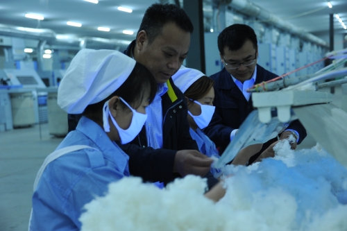 鑫旺棉業(yè)有限公司所使用的棉花,通過“三絲”檢測(cè)設(shè)備檢測(cè),再經(jīng)過人工檢驗(yàn),在確保棉花 從棉花加工起步到棉紡 鑫旺棉業(yè)位于豫東平原、河南主要產(chǎn)棉區(qū)尉氏縣產(chǎn)業(yè)集聚區(qū)。這里交通便利、地理位置優(yōu)越、環(huán)境優(yōu)美,是尉氏經(jīng)濟(jì)發(fā)展之中心,隸屬于開封市。今年45歲的史振雷,1996年在尉氏縣小陳鄉(xiāng)供銷社工作時(shí)就萌生了自主創(chuàng)業(yè)的念頭。1999年9月,國(guó)家棉花政策放開,史振雷發(fā)揮當(dāng)?shù)孛藁ㄙY源豐富、業(yè)務(wù)熟悉的優(yōu)勢(shì),創(chuàng)建了鄉(xiāng)里第一個(gè)棉花收購(gòu)加工廠。農(nóng)家出身的史振雷,從小養(yǎng)成吃苦耐勞的習(xí)慣、鍥而不舍的秉性,加之在供銷社當(dāng)主任、書記練就的智慧和才能,短短3年,生意做得風(fēng)生水起。工廠從當(dāng)初20多人、小型打包機(jī)、年收購(gòu)棉花1500噸,迅速發(fā)展到50余人、設(shè)備換成200型打包機(jī)、年收購(gòu)棉花5500噸,增長(zhǎng)了2.7倍,成為鄉(xiāng)鎮(zhèn)企業(yè)的領(lǐng)跑者。 2003年6月,企業(yè)完成原始積累后,為了拉長(zhǎng)產(chǎn)業(yè)鏈,提高附加值,在縣政府政策的支持下,史振雷決策籌建棉紡廠。公司從建廠初期的不足萬錠發(fā)展到15萬錠,運(yùn)營(yíng)從1個(gè)廠發(fā)展到3個(gè)子公司,資產(chǎn)從1500萬元發(fā)展到2.5億元,員工從180人發(fā)展到800人。企業(yè)發(fā)展期間,還收購(gòu)、兼并了天誠(chéng)棉業(yè)和京尉紡織公司兩家困難企業(yè)。企業(yè)滾動(dòng)發(fā)展,規(guī)模、資產(chǎn)、員工,分別比當(dāng)初增長(zhǎng)7倍、15.6倍和9倍。目前,鑫旺棉業(yè)已形成集棉花收購(gòu)、加工、棉紗生產(chǎn)、銷售為一體的中大型企業(yè)。公司年可產(chǎn)棉紗1.5萬噸、銷售收入近4.5億元。 轉(zhuǎn)型升級(jí)中生存發(fā)展 日前,記者走進(jìn)公司生產(chǎn)現(xiàn)場(chǎng),映入眼簾的是紗錠飛轉(zhuǎn)、紗線流水般落錠的立體畫卷,車間滿負(fù)荷生產(chǎn),員工忙碌的身影。公司到處呈現(xiàn)一派勃勃生機(jī)的繁榮景象。 目前,在經(jīng)濟(jì)大勢(shì)下滑、棉花走勢(shì)復(fù)雜、市場(chǎng)環(huán)境變化、生產(chǎn)成本上升,紡織行業(yè)面臨“新常態(tài)”的困難情況下,紡織企業(yè)普遍感到生存壓力巨大。 然而,在這里卻是生產(chǎn)銷售形勢(shì)喜人,棉紗供不應(yīng)求,訂單已安排生產(chǎn)到年底。今年1~10月,公司完成銷售收入3億元,比上年同期增長(zhǎng)18%;利潤(rùn)增幅仍保持較好的水平。這些閃光的成就,述說的是鑫旺棉業(yè)的興旺和輝煌,證明的是企業(yè)的特色產(chǎn)品和經(jīng)營(yíng)管理水平。 究竟是什么成就了今天的鑫旺?它有哪些優(yōu)勢(shì)和特點(diǎn)?史振雷概括了五點(diǎn):一是“機(jī)制優(yōu)勢(shì)”,鑫旺是民營(yíng)企業(yè),歷經(jīng)磨難形成的靈活機(jī)制優(yōu)勢(shì),是其他國(guó)有改制企業(yè)不具備的;二是“團(tuán)隊(duì)優(yōu)勢(shì)”,公司有一個(gè)團(tuán)結(jié)務(wù)實(shí)的班子和穩(wěn)定的員工隊(duì)伍;三是“產(chǎn)品優(yōu)勢(shì)”,“鑫旺”牌棉紗是河南省“名牌產(chǎn)品”,質(zhì)量穩(wěn)定,一致性好,已得到客戶的認(rèn)可;四是“棉花優(yōu)勢(shì)”,鑫旺棉業(yè)本來就是從事棉花經(jīng)營(yíng)的企業(yè),現(xiàn)在新疆建有棉花種植、收購(gòu)、加工基地,自供棉占企業(yè)用棉總量的70%以上,成本低;五是黨建工作和“企業(yè)文化優(yōu)勢(shì)”,黨組織在企業(yè)發(fā)揮的核心作用。 “近年來,東南亞國(guó)家中低支紗大量涌入中國(guó)。由于國(guó)內(nèi)外棉價(jià)差巨大,加之用工成本高,低支紗缺乏競(jìng)爭(zhēng)力,企業(yè)不得不轉(zhuǎn)向生產(chǎn)中高支紗。這也是棉紡行業(yè)的發(fā)展趨勢(shì)。”史振雷表示,兩年前,企業(yè)就著手調(diào)整產(chǎn)品結(jié)構(gòu),轉(zhuǎn)型升級(jí),當(dāng)時(shí)投入3000多萬元,進(jìn)行大規(guī)模設(shè)備改造和升級(jí)。公司采用上海昊昌精梳機(jī)、同和緊密紡、長(zhǎng)紡科技賽絡(luò)緊密紡、上海淳瑞科技?xì)饬骷彽葒?guó)內(nèi)一流設(shè)備,將原來生產(chǎn)的普梳32s、40s棉紗,調(diào)整為生產(chǎn)精梳賽絡(luò)緊密紡60s、80s以上棉紗。既避開了低支紗、同質(zhì)化惡性競(jìng)爭(zhēng),又提高了產(chǎn)品檔次和附加值,跨入了高端市場(chǎng),形成了企業(yè)新的經(jīng)濟(jì)增長(zhǎng)點(diǎn)。 同時(shí),企業(yè)通過技術(shù)培訓(xùn)、崗位練兵、技術(shù)比武等多種形式,提高員工隊(duì)伍操作技術(shù),一線員工優(yōu)一級(jí)手率達(dá)到85%。員工大部分是熟練工,適應(yīng)了企業(yè)的生產(chǎn)需要。企業(yè)還通過開展技術(shù)攻關(guān)活動(dòng),優(yōu)化工藝,提高效率,節(jié)能降耗,降低落棉,從而實(shí)現(xiàn)效益最大化。嚴(yán)格質(zhì)量標(biāo)準(zhǔn),實(shí)現(xiàn)道道把關(guān),確保產(chǎn)品質(zhì)量達(dá)到烏斯特2011公報(bào)5%水平,并獲得“縣長(zhǎng)質(zhì)量獎(jiǎng)”。公司堅(jiān)持把產(chǎn)品做精,把企業(yè)做扎實(shí)。目前,公司在廣東、福建、浙江、江蘇等省市設(shè)有5個(gè)辦事處,固定客戶有100多家,產(chǎn)銷率達(