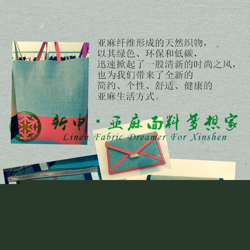 箱包在歐洲人眼中不僅是一個人品位、文化的代表,甚至成為一種社會地位和財富的重要象征。歐洲人對于箱包設計有著近乎完美的執(zhí)著追求,對于崇尚自然,注重健康,有著嚴苛的綠色環(huán)保法令保障,在綠色文化的倡導下,天然環(huán)保的亞麻布無疑成為“箱包文化”中綠色尊貴的時尚代表者,也承襲了數百年綠色紡織面料箱包中的經典之作。新申亞麻面料設計研究中心結合流行時尚,啟動箱包類別的亞麻帆布面料的設計研發(fā),從亞麻、帆布結合的面料質地、色彩、印染等工藝入手,力求在最短時間推出時尚的亞麻帆布面料,以迎接歐洲市場亞麻箱包時尚的流行風潮的來襲!