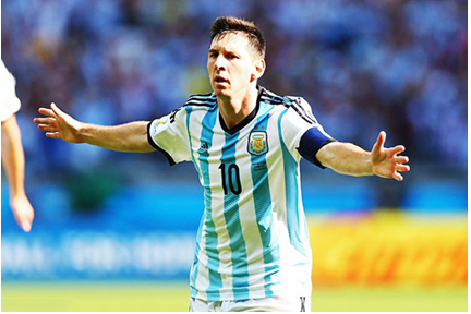 梅西穿著圓領(lǐng)T恤,大身布料白藍(lán)相間,圓領(lǐng)T恤羅紋