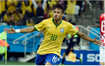 巴西隊(duì)?wèi){借內(nèi)馬爾的兩粒進(jìn)球3-1逆轉(zhuǎn)戰(zhàn)勝克羅地亞,馬爾身穿黃色上衣,上衣布料的綠色羅紋袖口、羅紋圓領(lǐng)與耐克logo相得益彰.