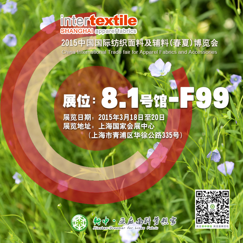 春暖花開、鳥語茶香,赴一場(chǎng)綠色亞麻之花的約定,看法國(guó)諾曼底頂級(jí)亞麻纖維原料如何經(jīng)由亞麻面料夢(mèng)想家之手,孕育生活新夢(mèng)想。一起開啟綠色2015中國(guó)國(guó)際紡織面料及輔料(春夏)博覽會(huì)時(shí)尚新篇章。3月18日,8.1號(hào)館-F99展位亞麻面料夢(mèng)想家與您不見不散! 轉(zhuǎn)載本網(wǎng)專稿請(qǐng)注明:"本文轉(zhuǎn)自錦橋紡織網(wǎng)"。 更多紡織專業(yè)資訊,關(guān)注錦橋紡織網(wǎng)微信公眾號(hào)。微信搜:錦橋紡織網(wǎng)