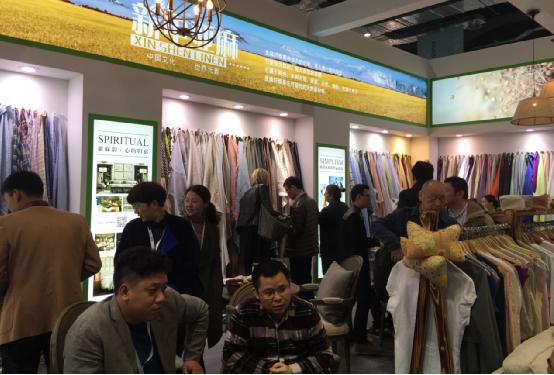 在展館中,新申亞麻面料夢想家們不斷迎接中外客商的光臨。其中最為引人矚目是新申亞麻多年的國內(nèi)知名合作伙伴快時(shí)尚品牌ASOBIO總裁毛錦泉親臨“鳥語茶香”展館,新申亞麻李建峰、李??翟谡桂^與他親切合影,再度見證對新申亞麻品牌的信任和彼此之間多年的情誼。