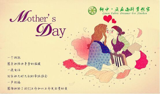 2015母親節(jié),亞麻面料夢想家友情提示:無論有多忙,請一定不要忘記今天為媽媽送上自己的祝福!無論說點什么,送些什么,或者幫媽媽做點什么,都是我們作為兒女感恩父母的禮物。都能讓她感受到你對她的思念,對她的牽掛和滿滿的愛意。也許這一刻,我們還可以也學習下英式的母親節(jié)表達:貝克漢姆的兒子16歲的布魯克林在3.15英國母親節(jié)這天在社交網(wǎng)站上公開寫到:“母親節(jié)快樂,世界上最棒的媽媽。”別忘了,你也有一個世界上最棒的媽媽。 轉(zhuǎn)載本網(wǎng)專稿請注明:"本文轉(zhuǎn)自錦橋紡織網(wǎng)"。 更多紡織專業(yè)資訊,關(guān)注錦橋紡織網(wǎng)微信公眾號。微信搜:錦橋紡織網(wǎng)