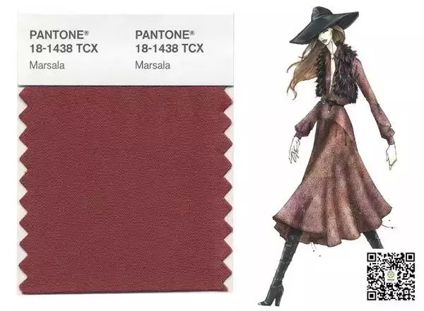 2015秋季流行色預(yù)測報(bào)告中,潘通公司列舉了10個(gè)顏色。除此之外,還有年度色號。今年是瑪莎拉色(Marsala)。往年的年度色號如下所示,從左到右為2014年到2008年依次遞減的年度色號。