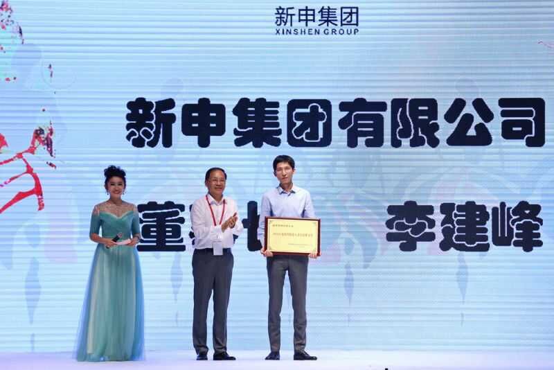 同時(shí),為感謝新申集團(tuán)為此次十佳評(píng)比所做出的突出貢獻(xiàn),江蘇紡織工業(yè)協(xié)會(huì)會(huì)長(zhǎng)謝明授予新申集團(tuán)“2015江蘇紡織服裝人才培育推動(dòng)獎(jiǎng)”,由新申集團(tuán)董事長(zhǎng)李建峰上臺(tái)領(lǐng)獎(jiǎng)。