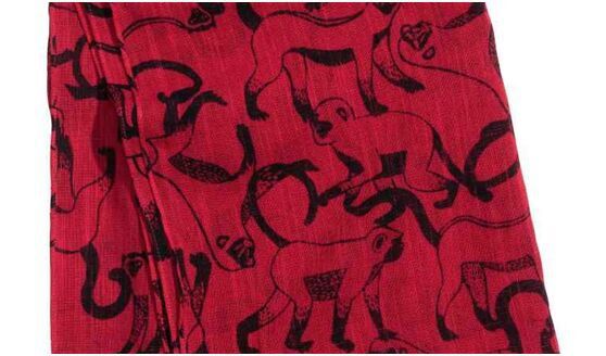 亞麻棉猴文化印花圖案梭織圍巾
