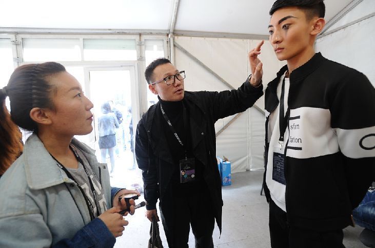 △設(shè)計師孫林秀前為model調(diào)整服飾