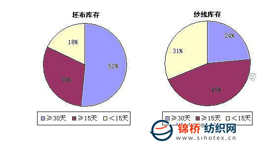 2.棉紡織企業(yè)紗布庫存情況:處于弱勢(shì)行情中的紡織企業(yè)通過各種途徑密切關(guān)注市場(chǎng)、調(diào)整產(chǎn)品結(jié)構(gòu),減少產(chǎn)品不對(duì)路產(chǎn)生不必要的損失,盡最大努力保證生產(chǎn)穩(wěn)定、職工穩(wěn)定,尤其是大中型紡織企業(yè)對(duì)穩(wěn)定一方平安做出巨大貢獻(xiàn)。為減少產(chǎn)品積壓、緩解資金壓力,多數(shù)被調(diào)查紡織企業(yè)采取減少班次、周末放假、減少開臺(tái)等方式進(jìn)行生產(chǎn),在減少資金占?jí)旱耐瑫r(shí),還減少原料采購量,一定程度緩解資金運(yùn)轉(zhuǎn)壓力。調(diào)查結(jié)果顯示,紡織企業(yè)紗線庫存19.03天,較上月減少1.15天,坯布庫存27.82天,較上月減少0.25天。