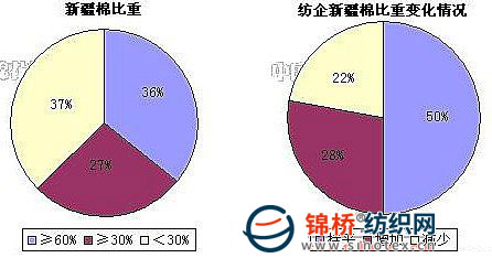 4.棉紡織企業(yè)新疆棉占總用棉比重:一方面,從部分企業(yè)了解看,目前高支紗銷售又出現(xiàn)回升局面,一定程度提高新疆棉使用比重;另一方面,采購棉花困難,生產低支紗需要的棉花多、流動資金量大,而生產高支紗則相反,不少企業(yè)出于資金和采購原料等方面考慮,增加新疆棉用量。調查結果顯示,被調查企業(yè)中,28%增加新疆棉使用量,22%減少新疆棉使用量。紡織企業(yè)新疆棉占總用棉比重由7月底的46.92%增加至8月底的48.43%。