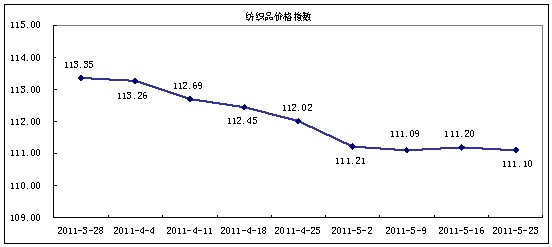 紡織品主要價格指數(shù)分析 “中國·柯橋紡織指數(shù)”20110523期價格指數(shù)收盤于111.10點,與上期相比下跌了0.09%。 本期價格指數(shù)與年初比上調(diào)6.14%,去年同比上調(diào)15.86%。本期從一級分類品種中顯示:原料類、家紡類、服飾輔料類價格指數(shù)價格指數(shù)不等量下跌,拉動總類價格指數(shù)小幅下滑;但坯布類、服裝面料類不等量上調(diào),相對制約了總類價格指數(shù)的下跌幅度。 本周價格指數(shù)運行情況分析 油價振蕩聚酯切片價格仍有下滑,棉花價格持續(xù)下跌。5月13日紐約商品交易所輕質(zhì)原油6月期貨收報99.65美元/桶,至5月20日收報99.49美元/桶;5月13日倫敦北海布倫特原油6月期貨收于113.83美元/桶,至5月20日7月期貨收報112.39美元/桶。國際原油價格振蕩,上游聚酯原材料市場價格振蕩上行,例如PTA華東市場現(xiàn)貨較低商談價5月13日在9500元/噸,至5月20日在9620元/噸;MEG華東市場現(xiàn)貨較低商談價5月13日在8520元/噸,至5月20日在8750元/噸。江浙半光切片現(xiàn)貨現(xiàn)款承兌較低商談價5月13日在12025元/噸,5月20日在11800元/噸,價格疲弱下探。國內(nèi)棉花價格繼續(xù)下跌,例如國內(nèi)328級棉5月13日收報24895元/噸,至5月20日收報24552元/噸,下跌343元/噸;229級棉5月13日收報26901元/噸,至5月20日收報26588元/噸,下跌313元/噸。 下游需求量仍顯不足,限電繼續(xù)影響產(chǎn)出。“累積疊加”效應(yīng)對輕紡企業(yè)影響將日甚。近期,棉花、紗線等紡織原料的價格有較大幅度下降,然而紡織企業(yè)的生產(chǎn)經(jīng)營狀況卻沒有出現(xiàn)較大改善。人工成本上漲、銀根緊縮、人民幣升值等不利因素產(chǎn)生的“累積疊加”效應(yīng),對企業(yè)影響將日甚。資金吃緊庫存成本難削。因外需不足,紡織原料庫存量依然充足,下游需求量仍有減少。由此,下游紡企也因為訂單縮減造成了上游原料大量庫存。今年以來央行五次提高存款準備金率,貸款利息隨之調(diào)高,紡織服裝出口企業(yè)的資金鏈都有點吃緊。 受棉價持續(xù)下跌、信貸政策收緊及人工成本上漲等多種因素影響,目前部分紡企銷售不暢,下游采購保持觀望態(tài)度。電荒繼續(xù)影響浙江紡織業(yè)。自5月份以來,江浙紡織企業(yè)相繼進入限電高峰,5月17日,浙江省有序用電錯避峰等級由D級錯避峰240萬千瓦,調(diào)整為C級錯避峰300萬千瓦,浙江長興等地已相繼執(zhí)行做五休二、做四休三的限電政策,此舉將對下游企業(yè)帶來較大影響。 坯布成交繼續(xù)增量。近期輕紡城坯布市場成交繼續(xù)攀升,化學(xué)纖維坯布、混紡纖維坯布成交呈現(xiàn)不等量攀升走勢,夏季薄型坯布需求增加,市場營銷優(yōu)勢依然顯現(xiàn)。 服裝面料價格指數(shù)微勢推升,夏裝面料成交依然活躍。近期,輕紡城市場營銷局部依然活躍,服裝面料價格指數(shù)微勢推升,成交較前期呈現(xiàn)振蕩推升走勢,創(chuàng)意花型面料成交仍顯活躍,服裝面料中的滌棉面料、滌毛面料、滌粘面料、滌氨彈力面料、粘膠面料、粘毛面料、時尚面料成交量呈現(xiàn)不等量攀升走勢。夏裝面料成交繼續(xù)活躍,創(chuàng)意花型面料成交繼續(xù)呈現(xiàn)增長走勢,但滌綸FDY噴織印花雪紡、118DFDY針織印花兩面彈T恤布大眾花型現(xiàn)貨成交局部回縮,有些中小經(jīng)營戶大路貨花型現(xiàn)貨成交振蕩下滑,但部分前店后廠式布業(yè)公司和規(guī)模性經(jīng)營門市創(chuàng)意花型夏裝滌綸面料成交依然攀升。印花人棉布創(chuàng)意花型面料成交依然活躍,連日成交繼續(xù)攀升,成交量繼續(xù)位居市場各大類面料前列。