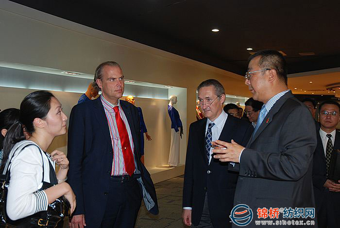 6月11日王沈陽會長、江輝副會長、王宇副會長在中國紡織品進出口商會創(chuàng)新能力訓練基地(昆山)會見并宴請來訪的瑞士紡織聯(lián)盟主席杭戈柏、秘書長舒維澤、奧地利紡織工業(yè)協(xié)會會長白豪生、西班牙棉紡業(yè)協(xié)會副會長馬倫凱、德國紡織服裝工業(yè)聯(lián)盟總干事鮑曼、法國紡織工業(yè)聯(lián)盟總干事艾曼紐爾、中歐紡織聯(lián)盟駐華辦事處代表。紡織商會兼職副會長、晨風集團董事長尹國新、東方國際集團綜合部部長郭福榮、利泰公司副總經(jīng)理趙曉東等參加會見。 王沈陽會長首先帶領歐盟客人參觀已經(jīng)有數(shù)10家企業(yè)入駐的基地面輔料展示中心和服裝展示中心,隨后雙方在坦誠友好的氣氛中就中歐紡織服裝業(yè)發(fā)展現(xiàn)狀、中歐雙方如何加強合作共同抵御危機等議題深入交流看法和意見。
