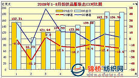 8月紡織品服裝出口156.96億美元