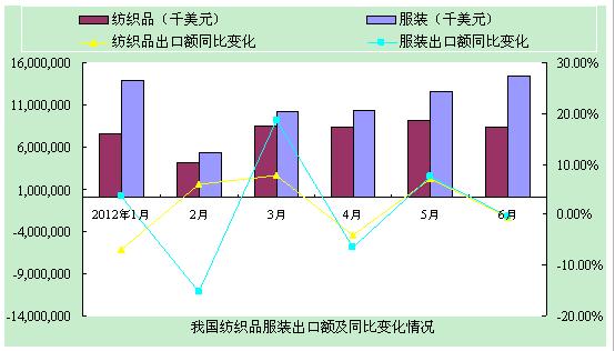 2012年6月紡織品服裝出口情況