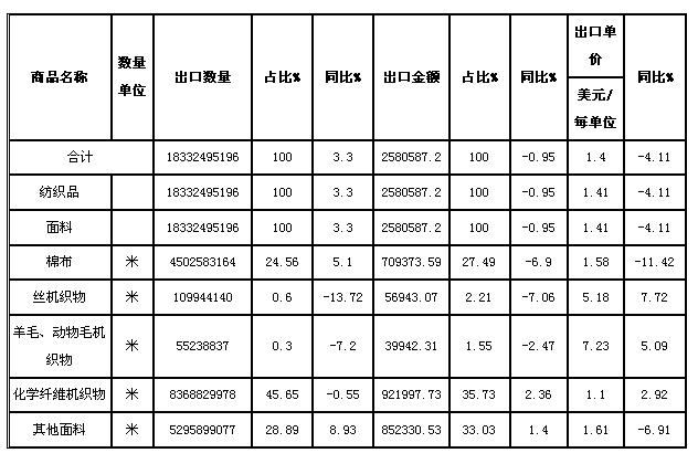 快訊:8月我國(guó)出口紡織品服裝同比減少3.35%