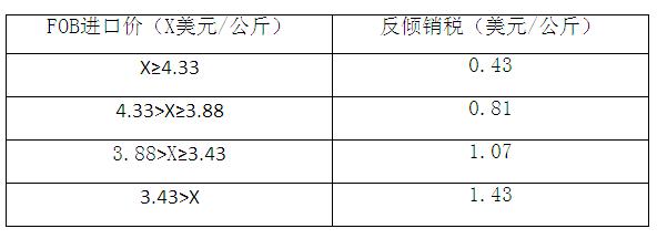 決議稱,該局已完成日落復(fù)審調(diào)查,經(jīng)調(diào)查分析,取消對上述產(chǎn)品征收反傾銷稅將有可能繼續(xù)對秘紡織行業(yè)造成傾銷和損害。鑒此,該局最終裁定對中國上述產(chǎn)品繼續(xù)征收反傾銷稅2年(征收幅度如下表),上述決議自《秘魯人報》發(fā)布之日起生效。