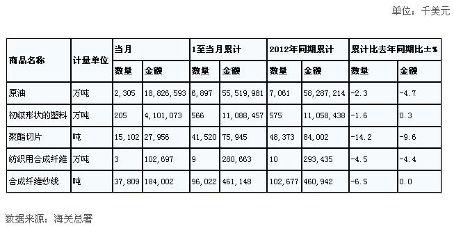 2013年3月全國紡織原料進(jìn)口商品量值表