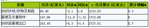 2014年11月我國(guó)紡織品服裝出口金額統(tǒng)計(jì)