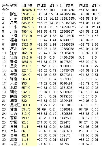2014年2月面料出口省市統(tǒng)計