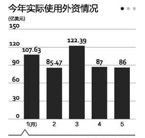 昨日公布的數(shù)據(jù)表明,5月當(dāng)月,實際使用外資金額86億美元,同比下降6.7%。由于外資與項目落地有關(guān)聯(lián),單月數(shù)據(jù)低迷并不能代表全年的走勢。