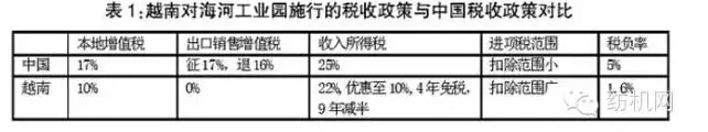 稅收政策優(yōu)勢。目前越南對海河工業(yè)園施行的稅收政策與中國對比情況(見表1)。