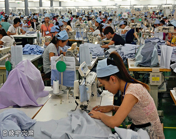 中國服裝產(chǎn)品出口額按日元計算每年超過20萬億日元,一直穩(wěn)坐亞洲“紡織大國”的地位。但中國國內(nèi)人工費在5年里翻了一番。隨著這一人工費迅速上漲,來自委托進行貼牌生產(chǎn)的海外訂貨企業(yè)的成本削減壓力日漸增加,中國企業(yè)也不得不討論轉(zhuǎn)移低附加值商品的生產(chǎn)。