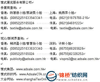 欲了解更多展會(huì)信息,請(qǐng)瀏覽大會(huì)指定信息網(wǎng):www.shanghaitexonline.com