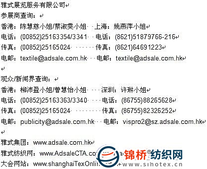 錦橋紡織網(wǎng)—資訊頻道> 展會新聞>正文 ShanghaiTex 2011——節(jié)能減排和低碳環(huán)保產(chǎn)品及最新技術展示之理想平臺