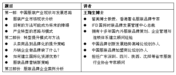 活動(dòng)四:中國(guó)服裝產(chǎn)業(yè)轉(zhuǎn)型及品牌策略論壇