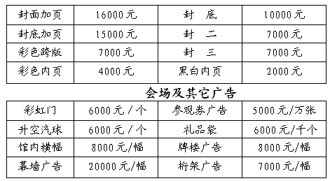 大會(huì)統(tǒng)一印制展覽會(huì)會(huì)刊(210mm×285mm),免費(fèi)贈(zèng)送給專業(yè)人士,歡迎認(rèn)刊,價(jià)目如下: