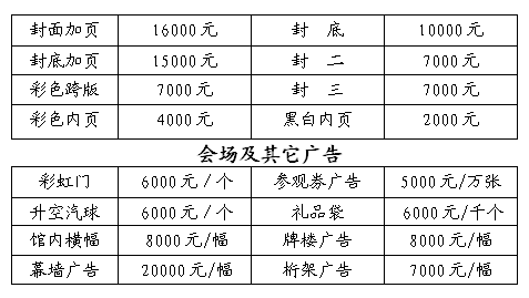 大會(huì)統(tǒng)一印制展覽會(huì)會(huì)刊(210mm×285mm),免費(fèi)贈(zèng)送給專業(yè)人士,歡迎認(rèn)刊,價(jià)目如下: