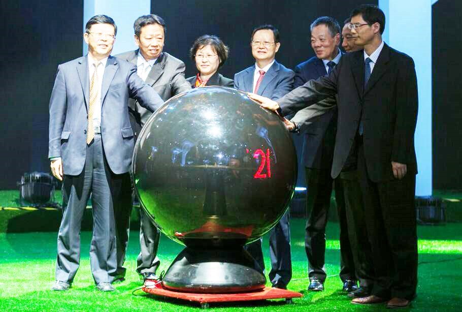 圖為眾領(lǐng)導(dǎo)在絲博會開幕式上共同啟動水晶球從左至右依次為中國絲綢協(xié)會會長楊永元、中華人民共和國商務(wù)部市場運(yùn)行司司長(國家繭絲辦主任)陳國凱、中華人民共和國工業(yè)和信息化部消費(fèi)品司副司長曹學(xué)軍、杭州市人民政府副市長謝雙成、中國紡織工業(yè)聯(lián)合會副會長楊紀(jì)朝、中國紡織品進(jìn)出口商會副會長王宇、商務(wù)部駐杭州特派員辦事處副特派員周關(guān)超