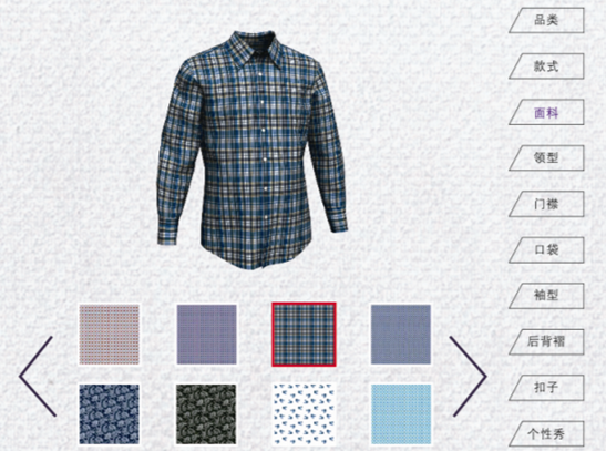 2.海量虛擬樣衣,節(jié)約成本。顧客在試衣機上選擇扣位,面料,衩位,口袋等,成衣效果立即出現,選擇變得直觀,高效,無風險。