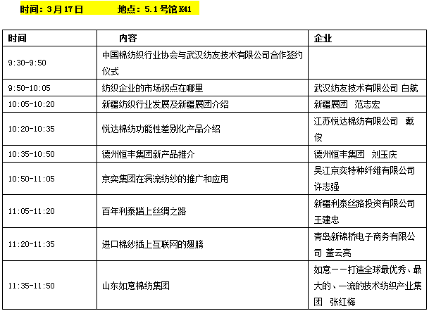 主辦方首次在展館里設立了“絲麗雅•紡織材料創(chuàng)新論壇”,位于5.1號館K41和E62展位。展覽期間,將舉辦五個專題共27場演講,分別是魅力牛仔纖維專場、綠色纖維專場、棉紡推介交流論壇專場、中國纖維流行趨勢發(fā)布專場和功能性纖維專場。觀眾在展區(qū)內(nèi)就可以與知名行業(yè)專家和企業(yè)負責人近距離接觸,聆聽他們的精彩演講,獲取纖維、紗線行業(yè)最新的動向及發(fā)展趨勢。