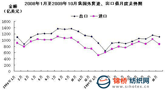2009年1-10月我國對外貿易進出口明顯好轉