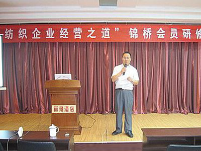 濰坊帛方、昌邑華信絲綢、昌邑華晨紡織、麗晶紡織等30余家錦橋紡織網(wǎng)會員單位的領(lǐng)導(dǎo)以及中國咨詢業(yè)網(wǎng)總經(jīng)理楊進朝、青島貴仁創(chuàng)業(yè)商務(wù)咨詢公司杜加朋總監(jiān)參加這次研修班。昌邑市經(jīng)濟與信息化局任德璽副局長在開班儀式上發(fā)表講話,錦橋紡織網(wǎng)董事長兼總經(jīng)理董云亮先生致歡迎詞。