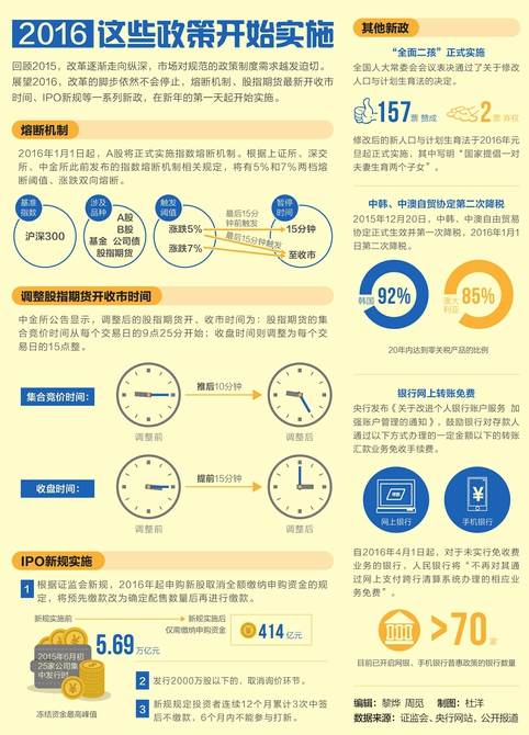 展望2016,改革的腳步依然不會停止,熔斷機制、股指期貨最新開收市時間、IPO新規(guī)等一系列新政,在新年的第一天起開始實施。