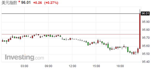 美元指數(shù)現(xiàn)報96.01,漲幅0.27%。
