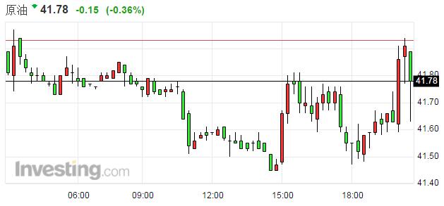 油價短線下跌,美原油現(xiàn)報41.78美元/桶,跌幅0.36%。