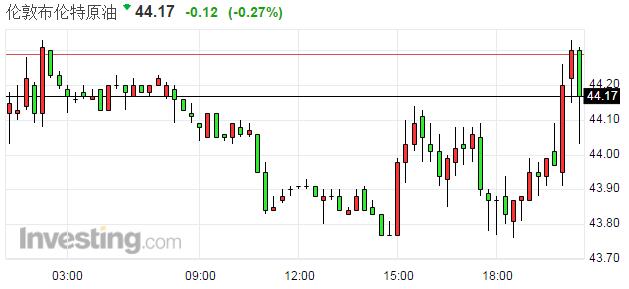 布倫特原油現(xiàn)報44.17美元/桶,跌幅0.27%。