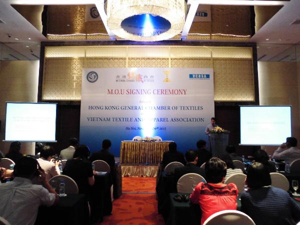 11月9日下午,由中國紡織品進(jìn)出口商會(huì)、香港紡織商會(huì)、越南紡織服裝協(xié)會(huì)(VITAS)和越南棉紗協(xié)會(huì)(VCOSA)聯(lián)合在河內(nèi)舉辦了“中越紡織服裝業(yè)研討會(huì)”,中國駐越南大使館經(jīng)商處徐啟崧參贊、南定省副主席陳黎懷、越南工業(yè)貿(mào)易部輕工業(yè)司司長潘志勇、越南紡織協(xié)會(huì)主席武德江和中國越南紡織服裝企業(yè)代表參加了會(huì)議。會(huì)上越南代表介紹了當(dāng)?shù)赝顿Y環(huán)境、TPP和其它自貿(mào)協(xié)定對(duì)越南紡織制衣業(yè)發(fā)展的影響,其后中方企業(yè)與10幾家當(dāng)?shù)卦侥掀髽I(yè)進(jìn)行了商貿(mào)對(duì)接。中越雙方均表示希望兩國紡織業(yè)充分發(fā)揮各自優(yōu)勢(shì),攜手共進(jìn),合作共贏。