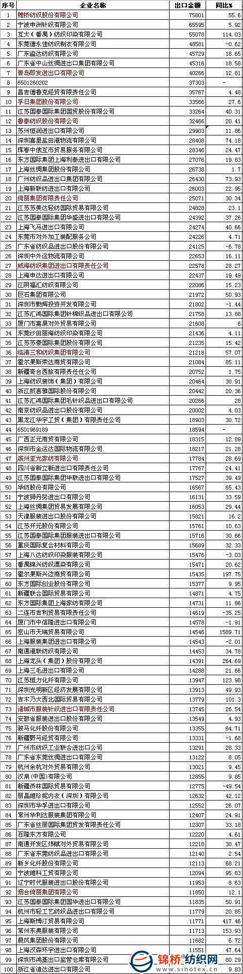 2010年1-11月中國紡織品服裝出口企業(yè)排名