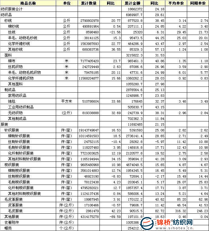 錦橋紡織網(wǎng)—資訊頻道> 統(tǒng)計(jì)資料>正文 2010年1-11月全國(guó)紡織服裝出口產(chǎn)品統(tǒng)計(jì)