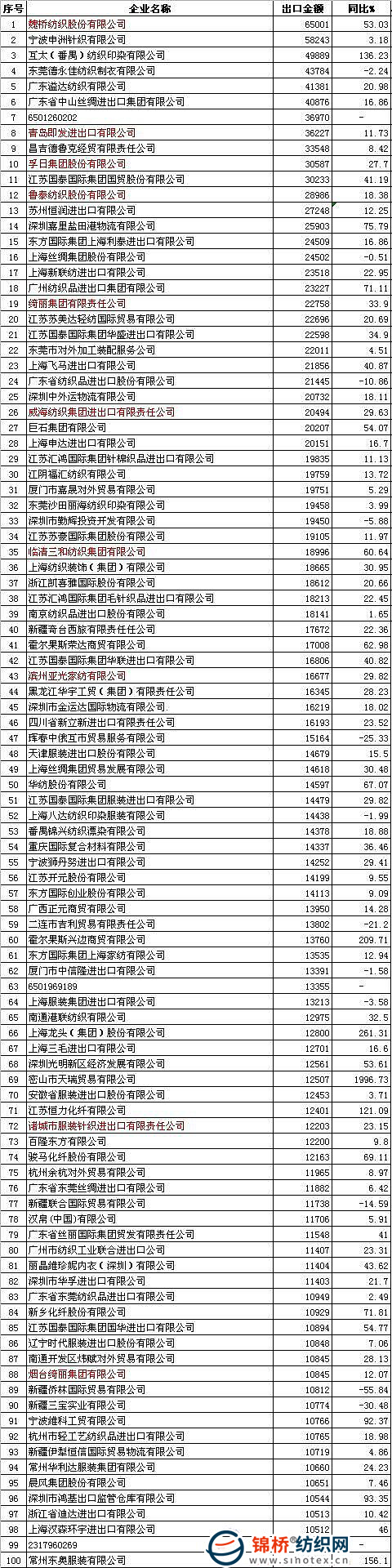 錦橋紡織網(wǎng)—資訊頻道> 統(tǒng)計資料>正文 2010年1-10月中國紡織品服裝出口企業(yè)排名