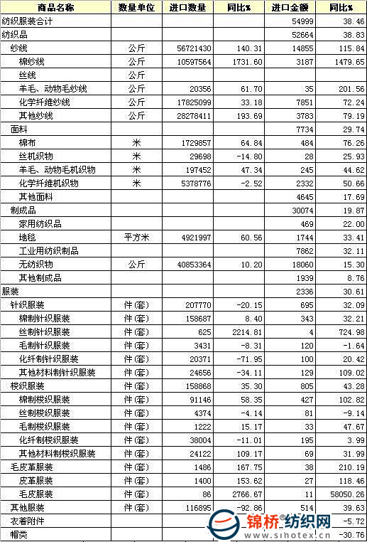 2010年1-10月我國自美國進口紡織品服裝統(tǒng)計