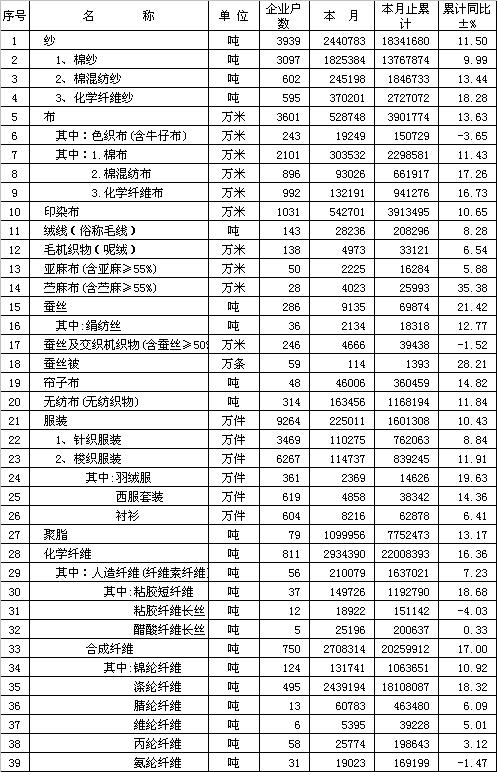 2011年8月紡織工業(yè)產(chǎn)量匯總表