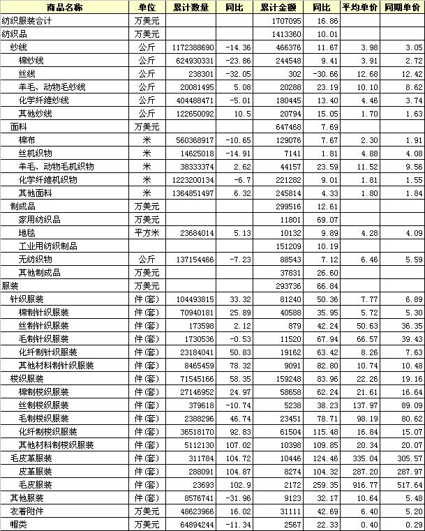 錦橋紡織網(wǎng)—資訊頻道> 統(tǒng)計(jì)資料>正文 2011年1-9月全國(guó)紡織服裝進(jìn)口產(chǎn)品統(tǒng)計(jì)