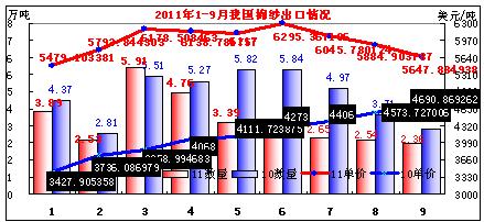 << 2011年1-8月紡織工業(yè)經(jīng)濟(jì)指標(biāo)完成情況匯總表2011年9月我國(guó)棉紗線進(jìn)口貿(mào)易方式及主要來(lái)源國(guó)別統(tǒng)計(jì) >>
