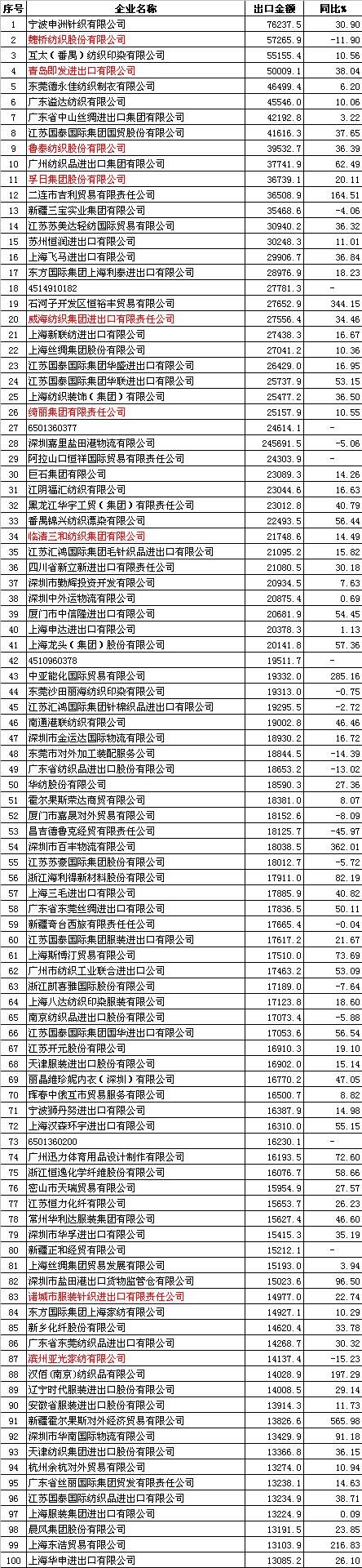 2011年1-10月中國(guó)紡織品服裝出口企業(yè)排名