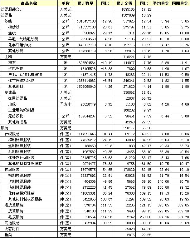 2011年1-10月全國紡織服裝進口產(chǎn)品統(tǒng)計