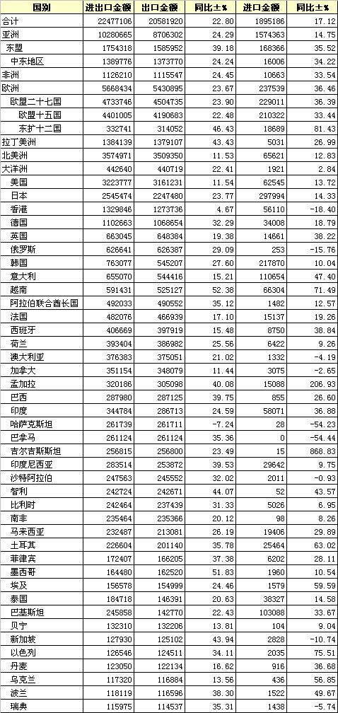 2011年1-10月我國紡織品服裝進(jìn)出口國別統(tǒng)計